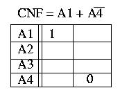 2b. Prendo la prima colonna disponibile della Target Table che soddisfa e riempiendo alcuni campi vuoti con 1 o 0 (riempio solamente i campi strettamente necessari per soddisfare e).