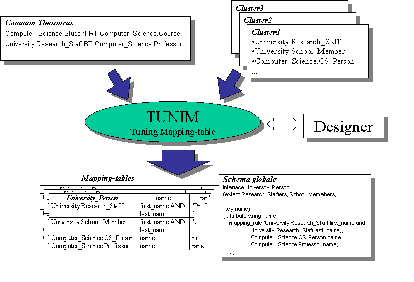 | This module manages the last phase of the integration process, the global schema creation. Starting from the relations in the Common Thesaurus, for each cluster calculated by ARTEMIS is created a global class. Each global class is characterized by a set of global attributes and a Mapping Table. The set of Attributes represents the global class structure and the Mapping Table which local information represents each Global Attribute. |