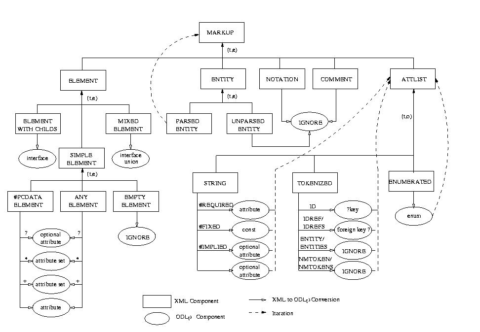 In questa tabella sono riportati gli algoritmi dettagliati di come andrà a lavorare il Wrapper per la generazione dello schema sorgente in ODLi3 dato un DTD di XML