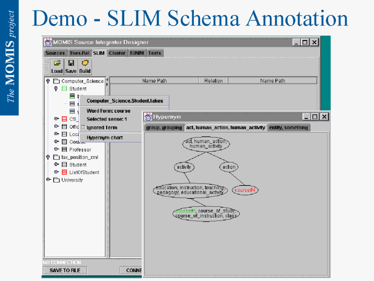 In this phase all schema elements are annotated, that means that each class name and attribute name is marked with the right Wordnet Synset.